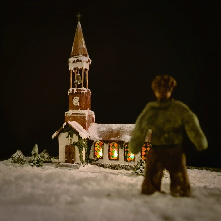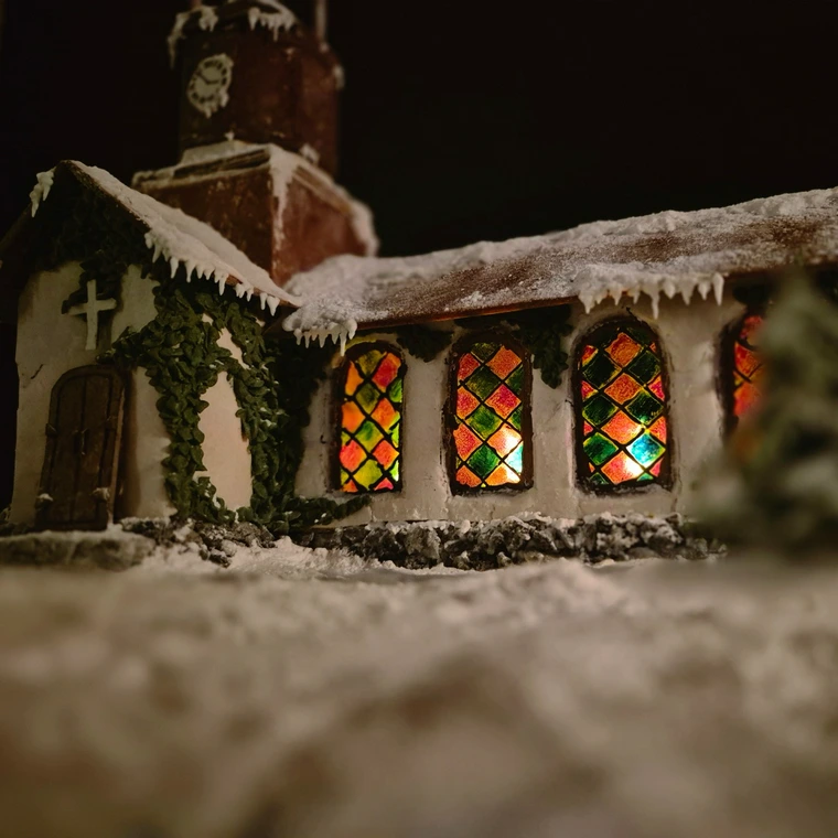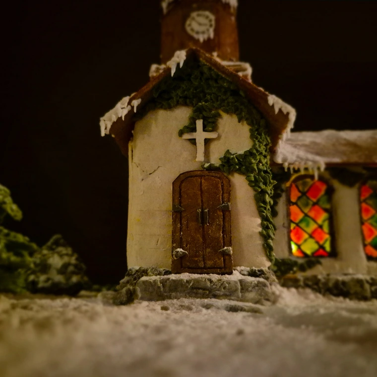 Designar kyrkan och testar proportioner med kartong