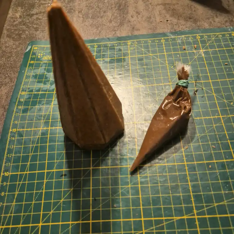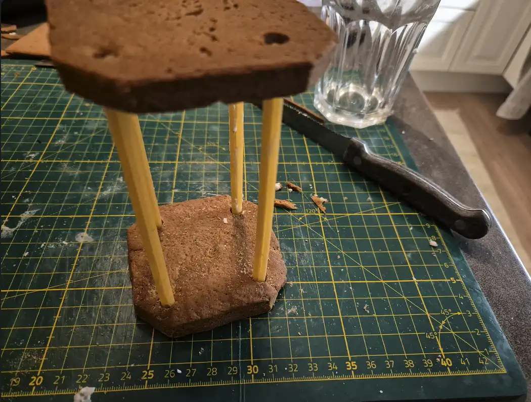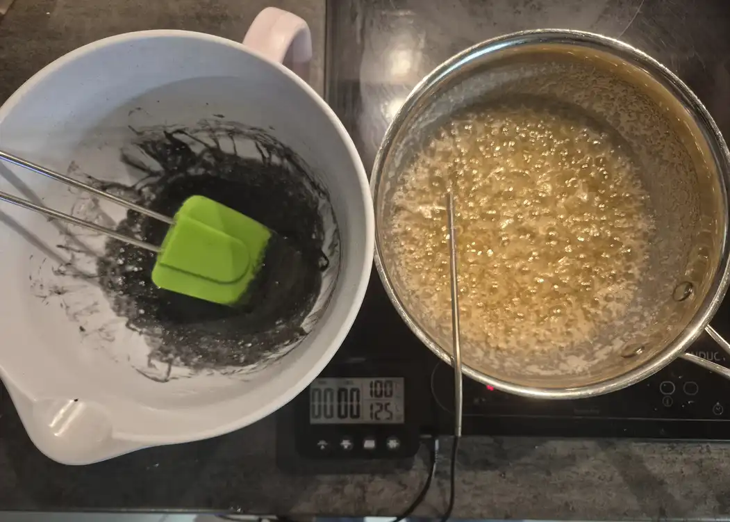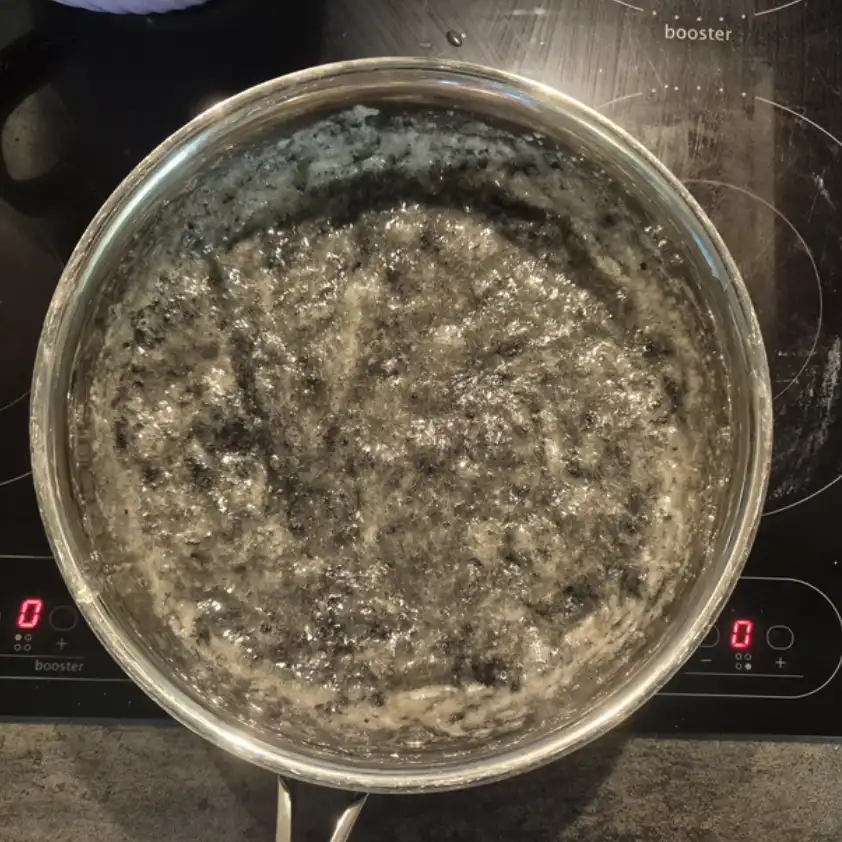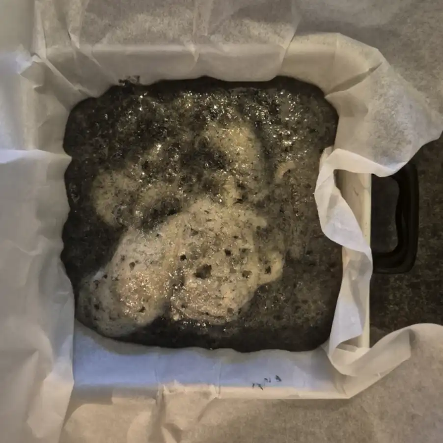 Gör stenar. Kemisk reaktion. Mix av bl.a. smält smör, äggvita, kolpulver och florsocker.