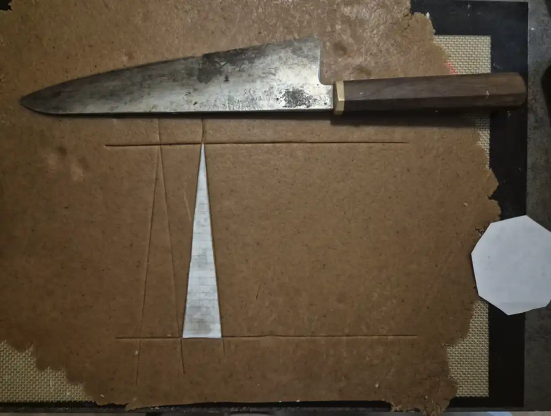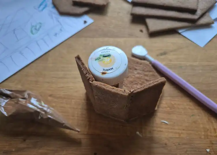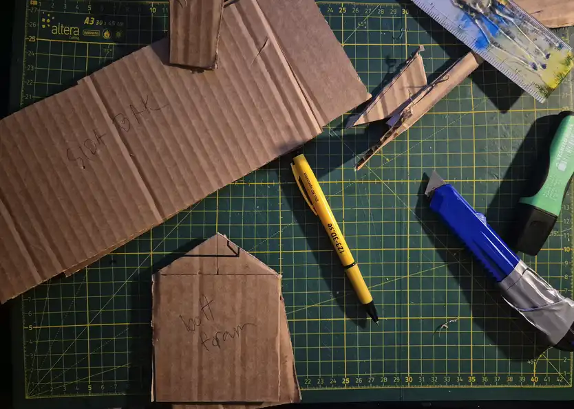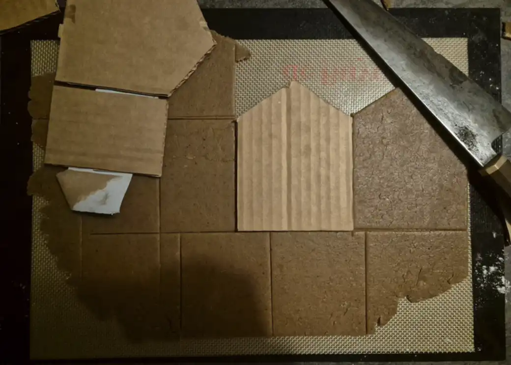 Bygge av kyrkan med kartong en som mallar.